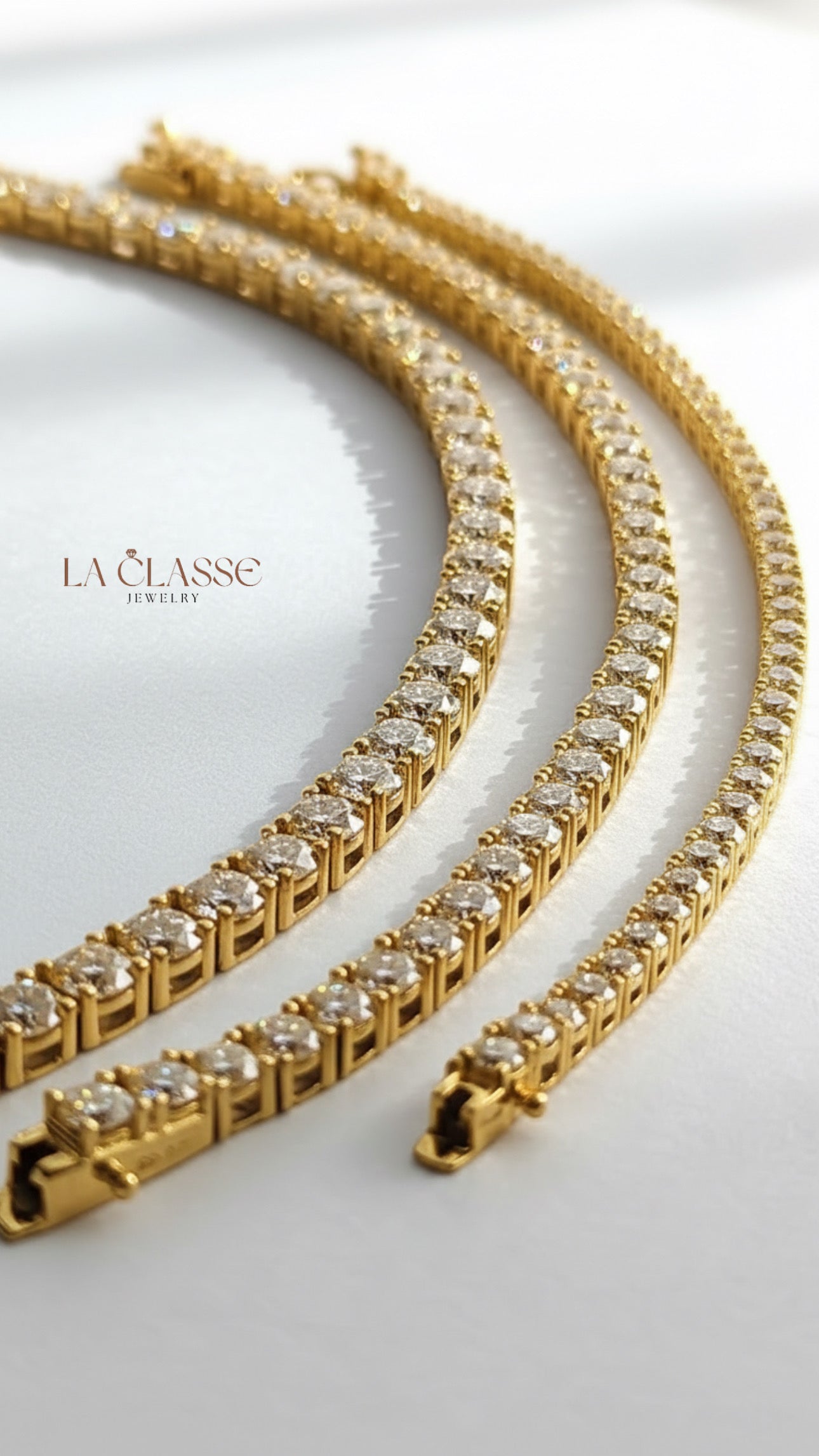 De Tennis Bracelet 5mm is een statement op zichzelf, maar laat zich ook moeiteloos combineren met andere sieraden. Een investering in klasse, perfect voor wie kiest voor kwaliteit, uitstraling en tijdloze schoonheid.